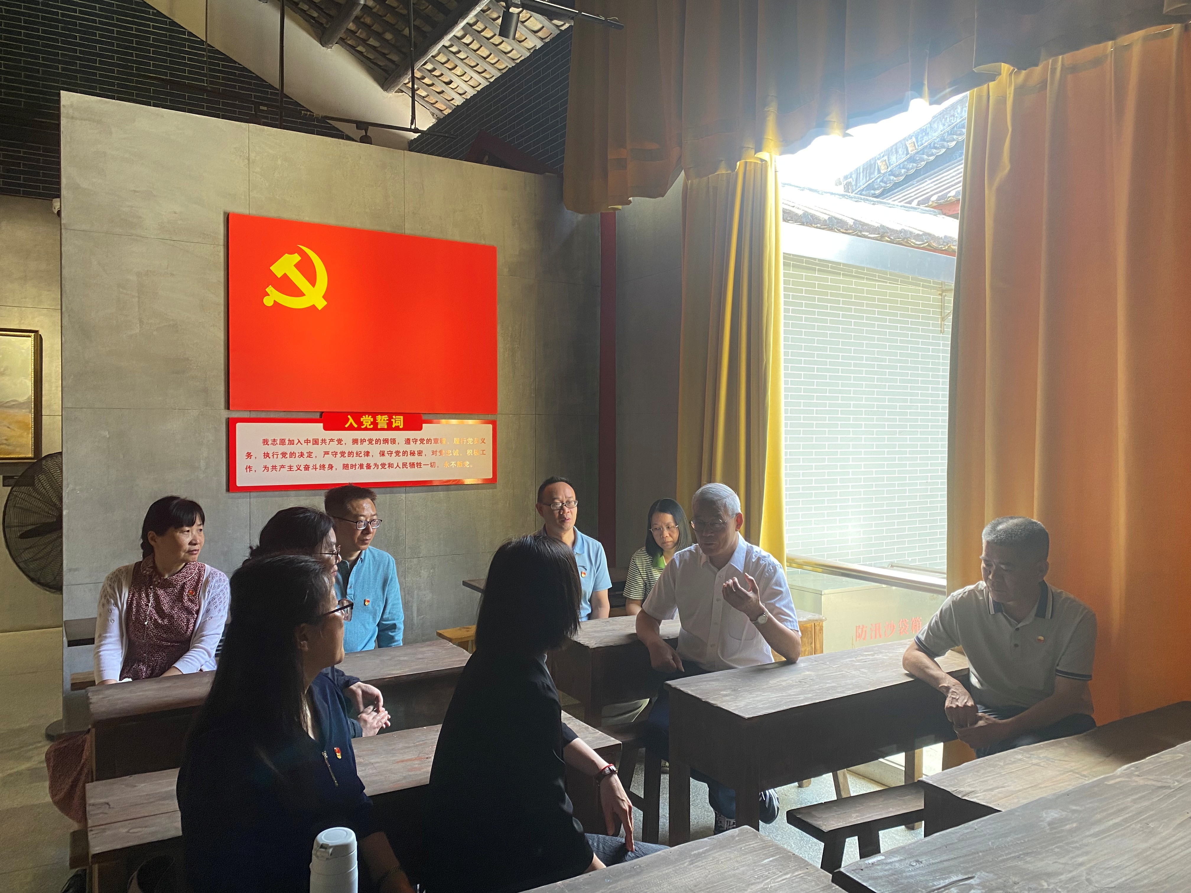 李慧副院长在遗址进行了微党课讲授,介绍了中国工农红军第四师的来龙去脉,围绕《旗展花县——中国工农红军第四师历史展陈》,边参观、边讲解。该展陈共包括“广州起义”、“花县整编”、“奔向海陆丰”三大部分、七个单元,综合运用照片、文物、雕塑等多种形式以及全息影像等现代科技展示手段,浓墨重彩地呈现了红四师艰难转折的全过程。通过参观学习和李慧的讲解,大家仿佛回到了那段浴血奋战的峥嵘岁月,也更加深刻的认识到,红四师的成立,促进了花县革命形势的发展,保存了广州起义的革命火种,书写了中国工农红军的伟大历程。李慧讲解后,大家纷纷发言,表示在这里进行了一次生动的革命传统教育,对花都的红色文化有了新的认识。