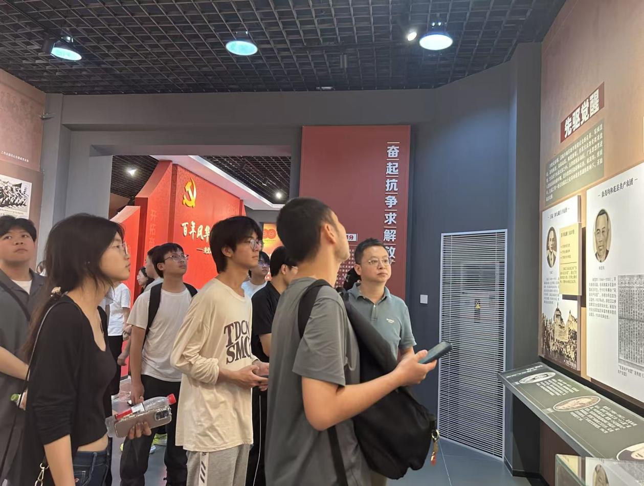 参观过程中,李慧向同学们讲述了花县革命的光辉岁月,同学们神情严肃,认真聆听。从花县工农运动的星火燎原,到抗日救亡的浴血坚守;从解放初期的艰苦创业,到改革开放的勇毅争先;从新时代的实干笃行,到高质量发展的阔步向前。每一段峥嵘历程都镌刻着赤子初心,激荡着家国情怀与使命担当。“经过此次活动,我对中国近代革命史有更直观的感受,对花都革命史、建设史、发展史有了更深的了解,也对广东红色历史有了更生动的认识。当今幸福生活来之不易,我们要继续弘扬伟大建党精神,学习革命先辈们的爱国主义精神”。25级计算机科学与技术7班的杜承起同学由衷地说。