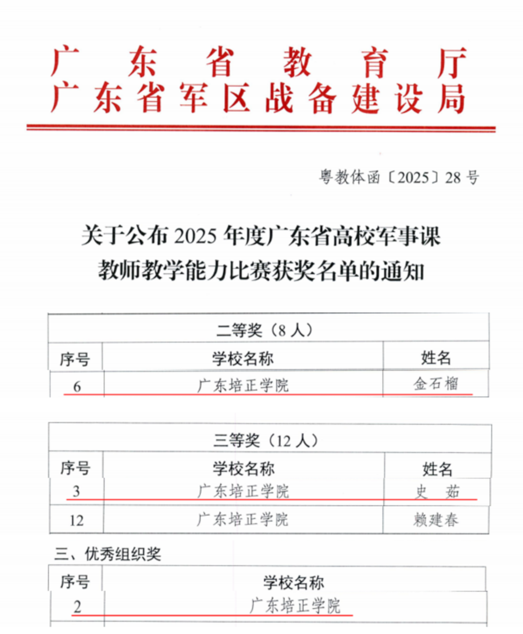 我院三位教师在广东省高校军事课教师教学能力比赛中获得佳绩